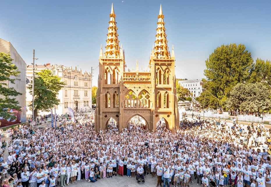 Na Espanha, nossa equipe de Burgos contribuiu com mais de três toneladas de papelão reciclado para construir uma réplica em tamanho real da Catedral de Burgos, peça central do festival cultural da cidade. Centenas de voluntários participaram, reforçando o poder da criatividade coletiva e do design sustentável.