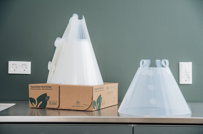 Vetnordic, un proveedor veterinario danés, necesitaba una forma eficiente de envasar sus nuevos collares para mascotas. Envasar los collares de cono más grandes habría requerido cajas de gran tamaño, desperdiciando materiales y espacio de almacenamiento. En su lugar, Vetnordic buscó una solución compacta, funcional y sostenible que se adaptara a tres tamaños de collar y, al mismo tiempo, optimizara el espacio de envío y almacenaje