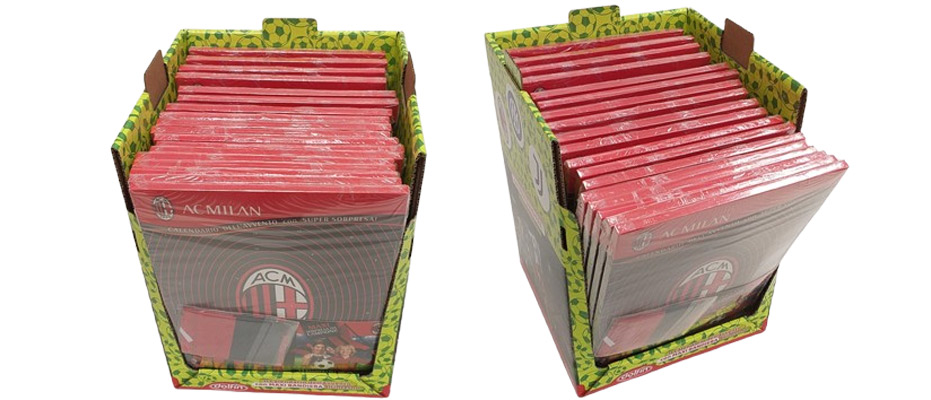Dolfin, an Italian confectionery company producing seasonal chocolate products, encountered a major challenge with the display of their football advent calendar, which included chocolates and a team flag. They asked us to create a new display packaging solution that would keep the flag visible while ensuring the trays remained stable, even when stacked or accidentally knocked. Their previous solution, though offering good visibility, had serious drawbacks: the calendars frequently fell out, and the trays were prone to toppling over. This instability, particularly during handling or accidental impacts, caused significant issues in retail settings.