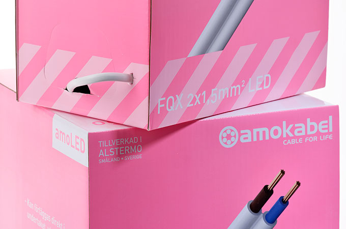 Het Zweedse bedrijf Amokabel is toonaangevend in de productie van snoeren en kabels en staat bekend om zijn inzet voor het milieu. Dankzij zijn investeringen in zonne-, wind- en waterkracht is het bedrijf op indrukwekkende wijze zelfvoorzienend geworden op het gebied van energie. Geïnspireerd door ons Bag-in-Box-concept wilde Amokabel de traditionele plastic kabelhaspels vervangen door een oplossing op papierbasis.