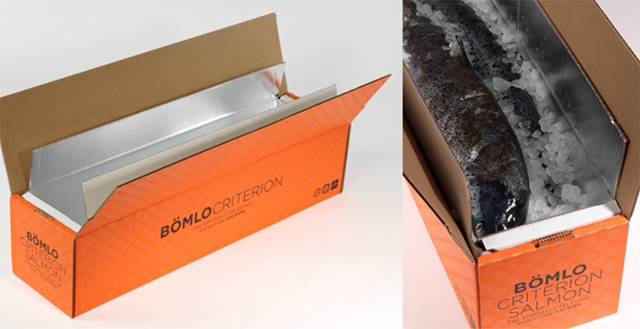 I Bremnes Seashores mer eksklusive emballasjeløsning til BÖMLO Criterion pakkes to laks på totalt ca. 10 kg i ett lager av is. Emballasjen består av to esker der den ytre er 100% resirkulerbar. Den indre esken har et meget tynt fuktavvisende aluminiumsjikt som holder temperaturen stabilt lav, samtidig som den beskytter pappen og kan gjenvinnes. Løsningen er utviklet for å klare den tøffe påkjenningen av den lange transporten fra Norge til noen av Sør-Europas eksklusive restauranter.