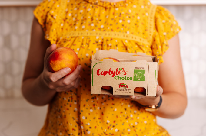 En Titan Farms, el mayor productor de duraznos en la costa este de EE. UU., presentamos un portador de duraznos reciclable a base de fibra de papel que reemplaza el plástico, ofreciendo a los clientes una opción práctica para llevar. Este diseño incluye una asa ergonómica que facilita su manipulación que refleja el compromiso de Titan Farms con la innovación y la responsabilidad ambiental.