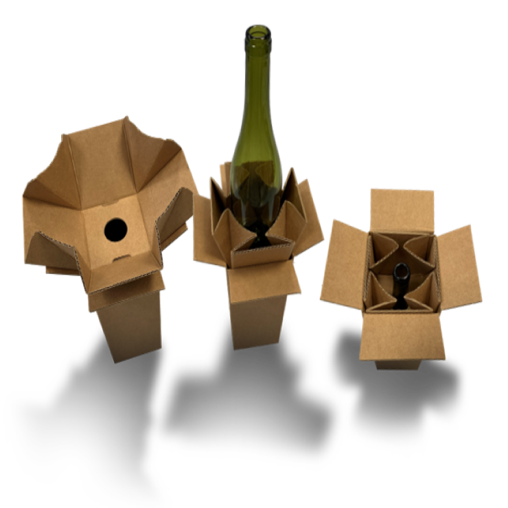 Quando tiver necessidade de enviar várias garrafas de vinho juntas, a nossa solução de separador 3 em 1 é perfeita. Está disponível como embalagem manual, pré-colada ou totalmente automática e pode adaptar-se a diversas formas e tamanhos de garrafas.