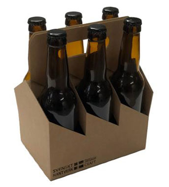 Våra standardförpackningar för mikrobryggeri är anpassade för flaska eller burk, 33 respektive 50 cl. De har en ren design i brunt eller vitt för att etiketterna på din dryck ska få maximalt fokus. De mindre förpackningarna för 3 eller 6 flaskor har även smidiga bärgrepp. Och det bästa av allt är att materialet, liksom i alla våra pappersprodukter, består av förnyelsebar resurs och är 100% återvinningsbart.