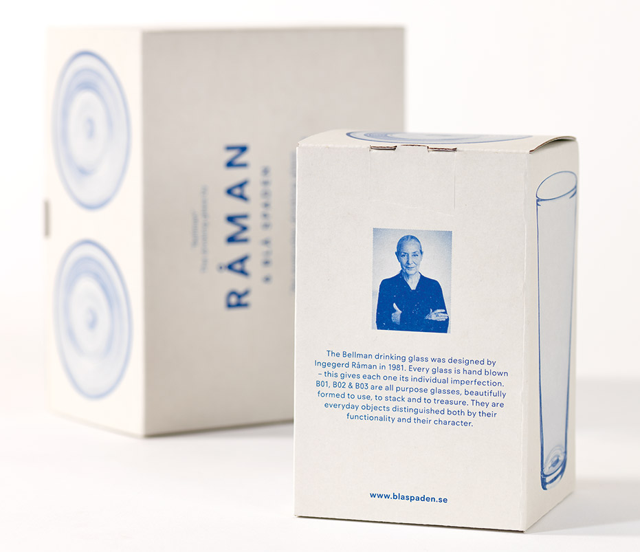 – Glädjande nog fick jag förtroende både från Ingegerd Råman och Skrufs glasbruk att gå vidare och ta fram förpackningar som fångade hantverkskunnandet och den unika stilen i Bellman-serien.