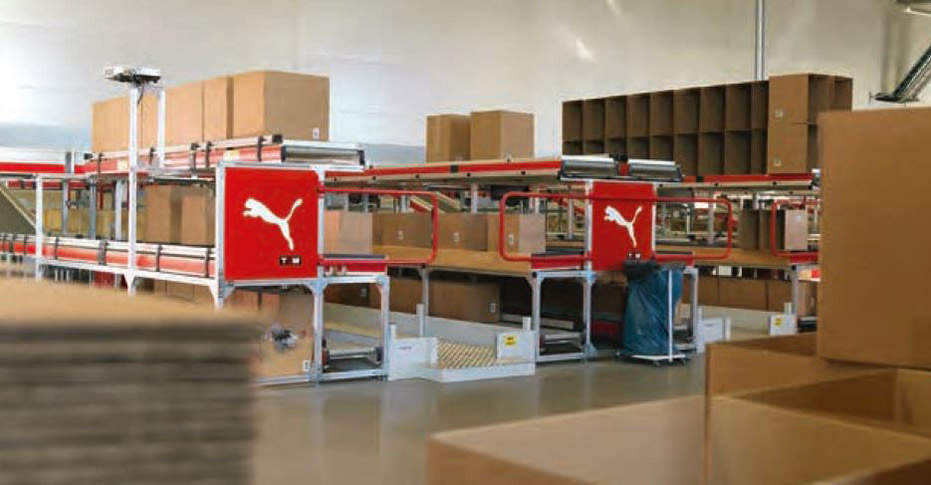 På Pumas nordiska lager hanteras 17 000 nya artiklar varje säsong och i det 18 meter höga, 100 meter långa och 60 meter breda lagret finns plats för 160 000 lådor med skor, tröjor, byxor och alla de andra produkterna som har gjort varumärket Puma världsberömt. Sedan januari 2017 har förpackningslinjen på lagret blivit ett pilotprojekt av effektivitet som Pumakontor i övriga världen intresserat tittar på.