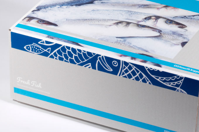 Vår pappersbaserade fiskförpackning används till alla typer av kyld färsk fisk. För att hålla en jämn temperatur i lådan adderas is eller någon form av kylelement. Inuti lådan placeras ett vattenresistent skyddspapper som håller förpackningen torr och stabil genom hela leveranskedjan.