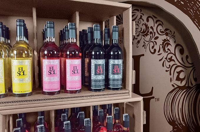 Nuestros diseñadores aceptaron con entusiasmo el desafío, con el objetivo de diseñar un exhibidor único de cartón corrugado que imitaría una bodega de vinos española realista. El objetivo era crear algo más que una exhibición estándar, combinando tanto la estética, como la funcionalidad. El requerimiento también solicitaba que se integrara iluminación e ilustración, mejorando el impacto visual y manteniendo el producto como el centro de atención.